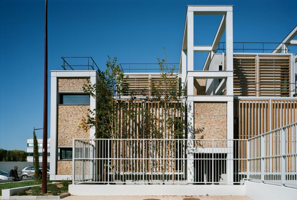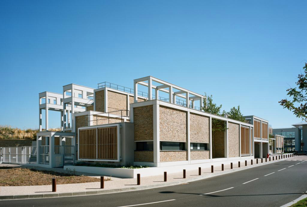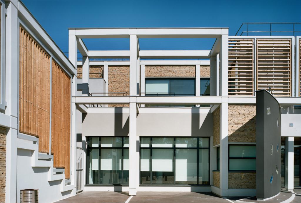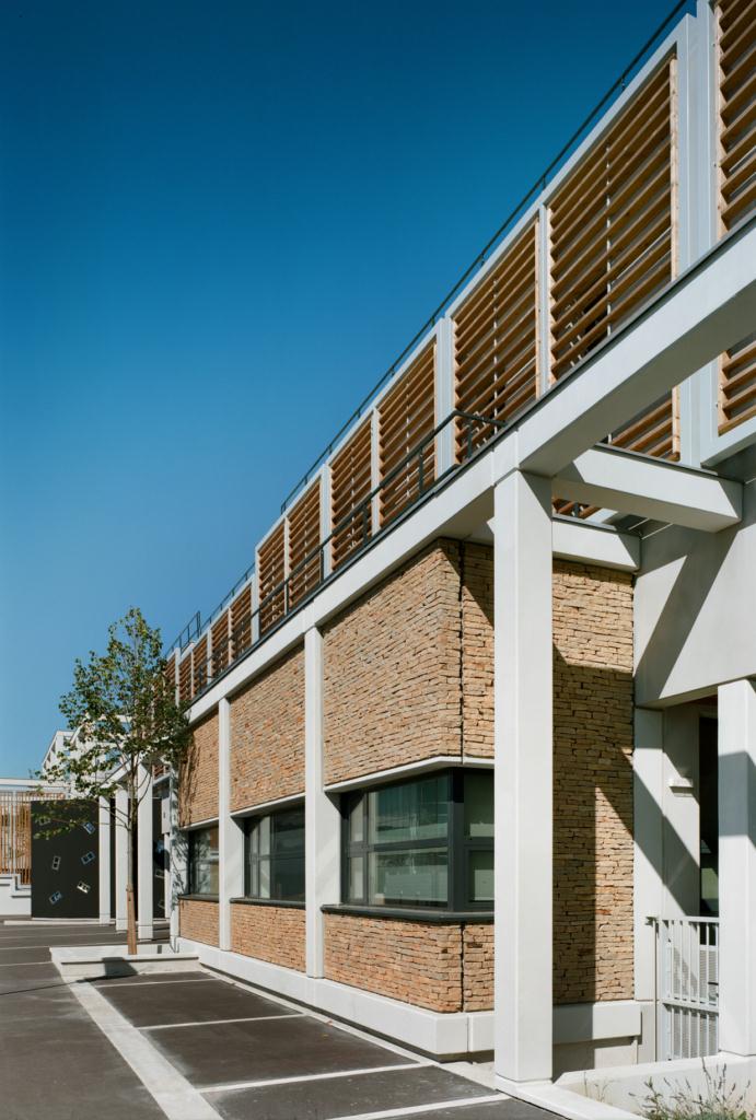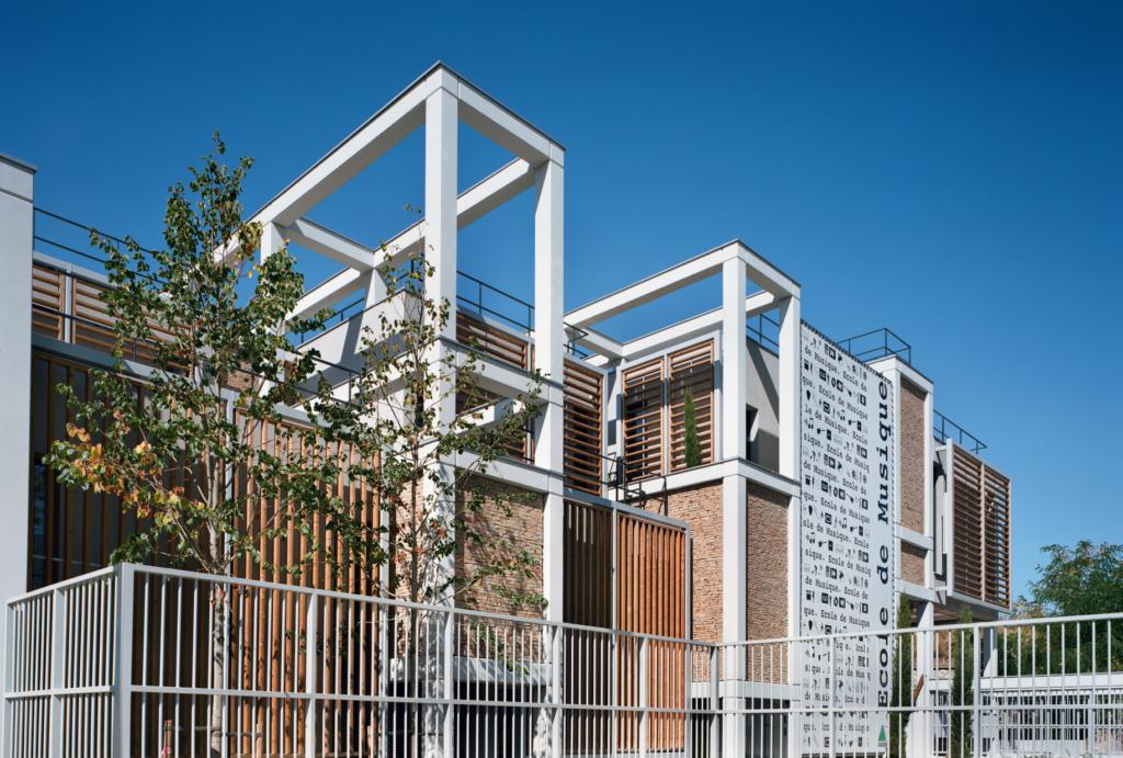 Une école en ville nouvelle de St Quentin en Yvelines, jouxtant le Fort Napoléonien de la Redoute. Partie intégrante d’un ensemble musical, comprenant un café-musique amplifié, le projet se compose de 5 lames épaisses de pierre à joints secs, en provenance virtuelle des murs épais du fort. Un auditorium de 200 places, des volumes intérieurs de grandes hauteurs, avec patios et végétations |