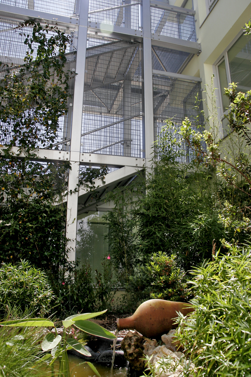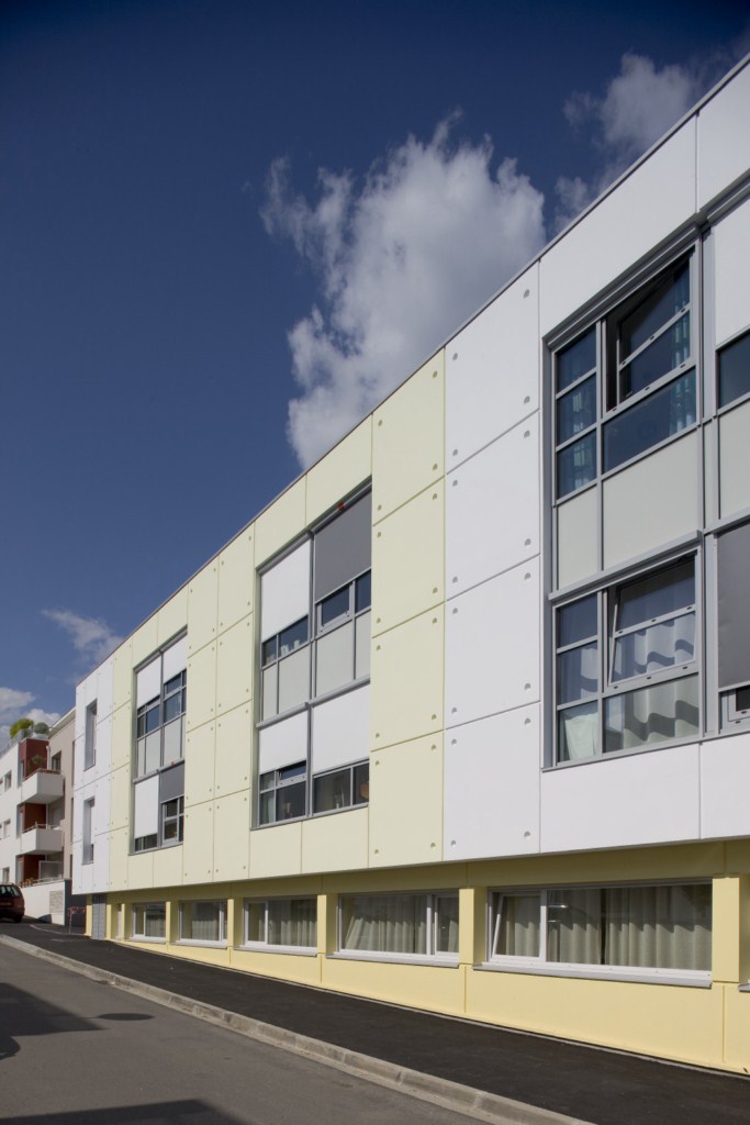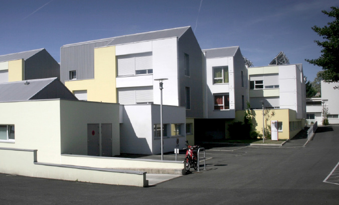 Organisation architecturale et fonctionnelle basée sur les volumes régionaux abritant les cultures maraîchères. Jeux de parallélépipèdes qui coulissent entre eux pour créer des patios terrasses, accueil, etc. L’unité Alzheimer en RDC est au cœur de la ville de Nantes. La vie de tous les jours est perceptible. Nombreuses terrasses privatives avec végétations grimpantes.