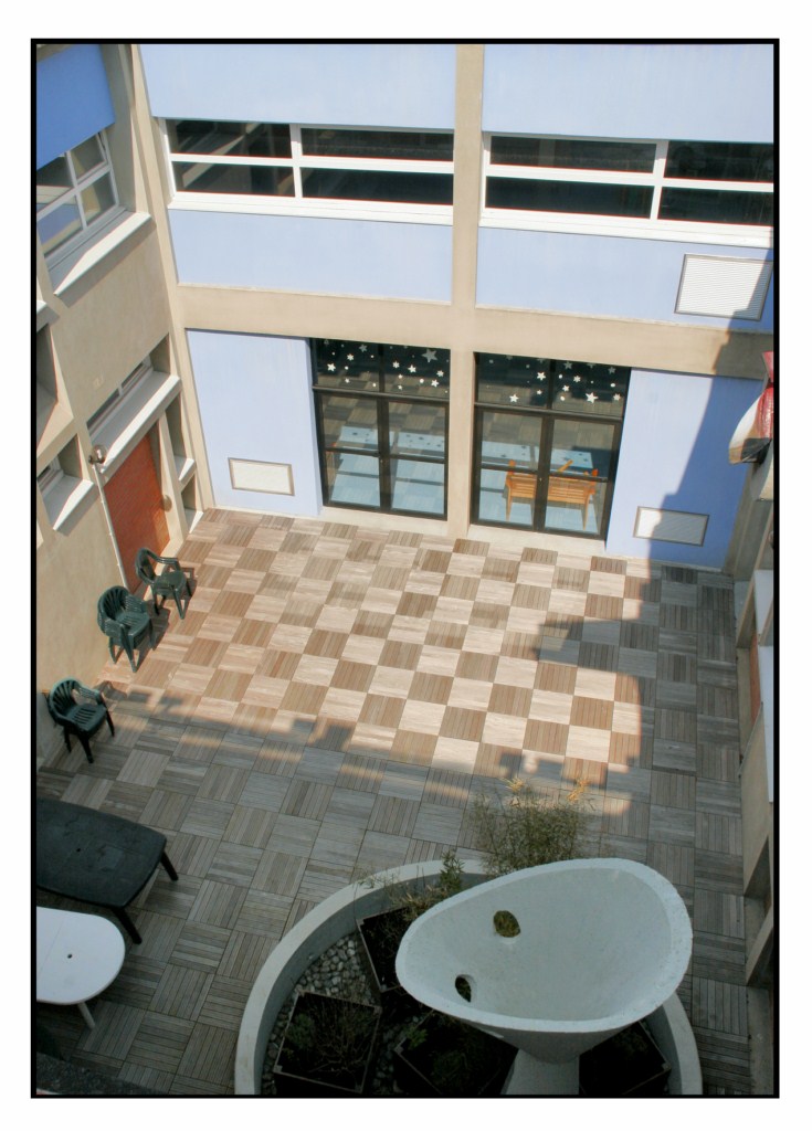 Une structure hospitalière des années 65-70 où tout avait vieilli, faute d’entretien. Nous avons insufflé une nouvelle dynamique par le changement de toutes les fenêtres, une polychromie de repérages pour les sols, ainsi qu’une remise aux normes de tous les hébergements pour les enfants handicapés qui résident en ces lieux. |