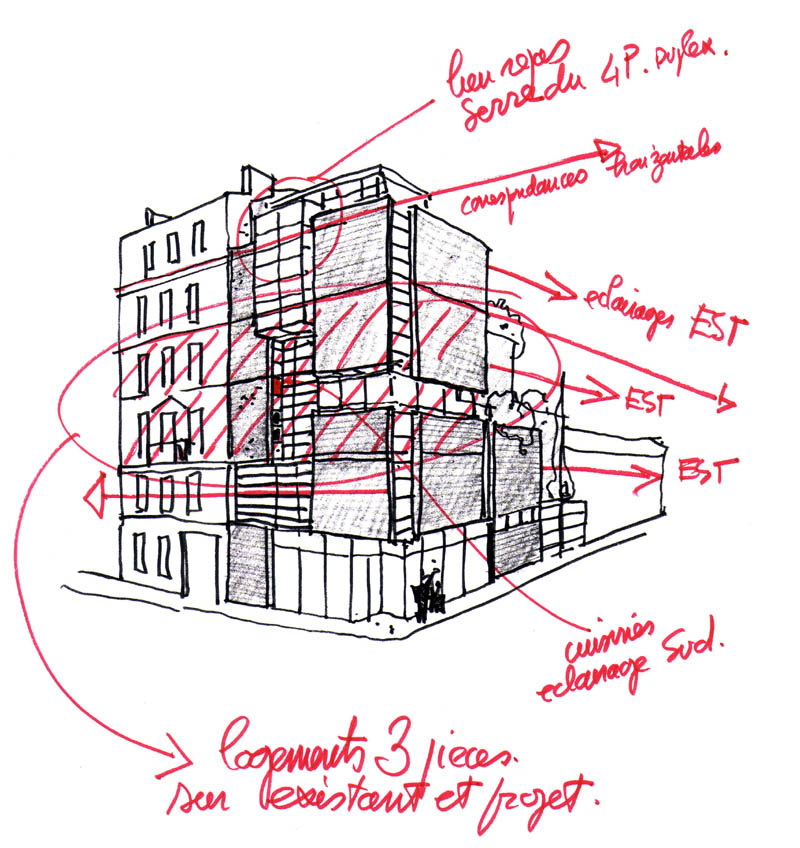 13. Création d’un bâtiment d’angle et réhabilitation d’un bâtiment en R+5