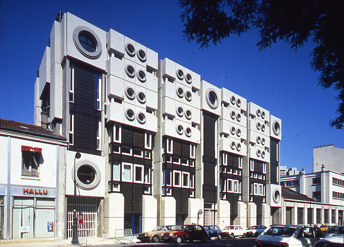 24 ateliers pour musiciens comprenant des studios et 3 pièces duplex avec locaux collectifs traversants en RDC. Façades traitées par symboliques musicales selon des panneaux préfabriqués en béton et ossatures métalliques. Les duplex sont conçus avec « cheminées » musicales réglables par fermetures horizontales pour réverbération ou absorption selon le choix du musicien.